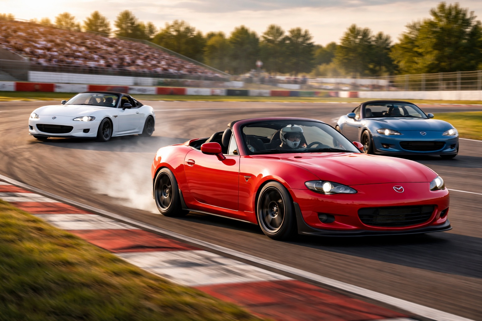 Toinen sukupolvi, NB (1998–2005), hioi konseptia: umpivalot vaihtuivat kiinteisiin, mutta auto säilytti klassiset mittasuhteensa ja ajofiiliksensä. Tämä oli kausi, jolloin Miata vakiinnutti asemansa harrastajien suosikkina ja keräsi lukuisia palkintoja.
